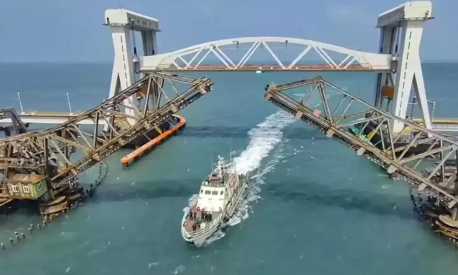 இதனிடையே, பாம்பன் கடலில் ரூ.546 கோடி மதிப்பில் கட்டப்பட்ட புதிய ரெயில் பாலம் கட்டி முடிக்கப்பட்டது. கடல் மட்டத்தில் இருந்து சுமார் 17 மீட்டர் உயரத்தில் அமைக்கப்பட்டுள்ள இந்த பாலத்தின் நடுவில் 650 டன் எடை கொண்ட தூக்குப் பாலமும் அமைக்கப்பட்டு உள்ளது. கப்பல்கள் செல்லும்போது இந்த செங்குத்து பாலம் செங்குத்து வடிவில் திறக்கும்.
