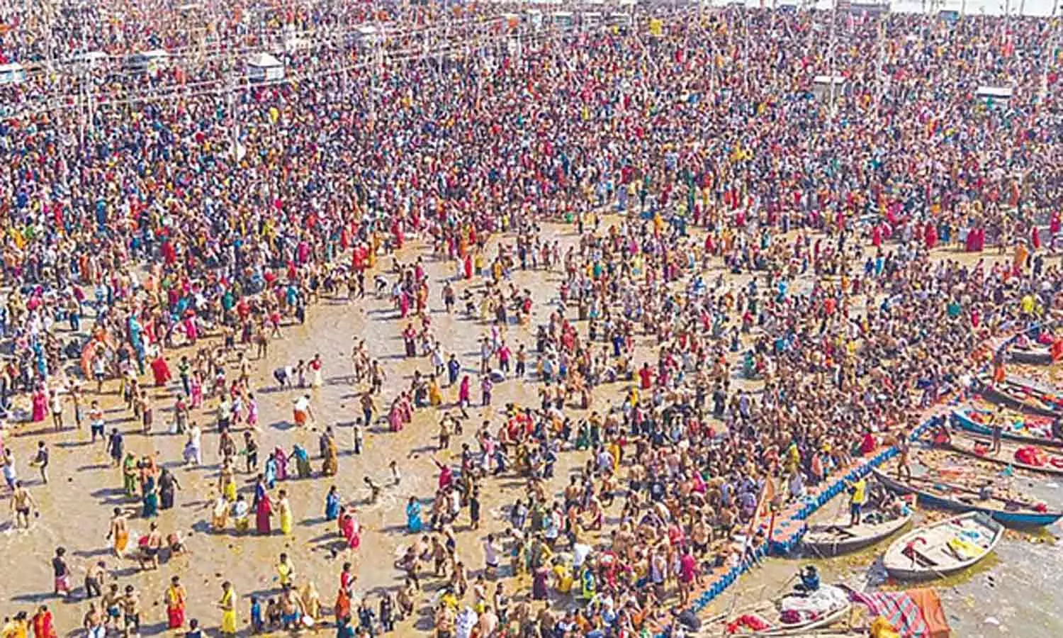 உலகம் முழுவதும் உள்ள இந்து மதத்தினர் பிரயாக்ராஜில் திரண்டு அங்குள்ள உள்ள திரிவேணி சங்கமத்தில் புனித நீராடினர்.