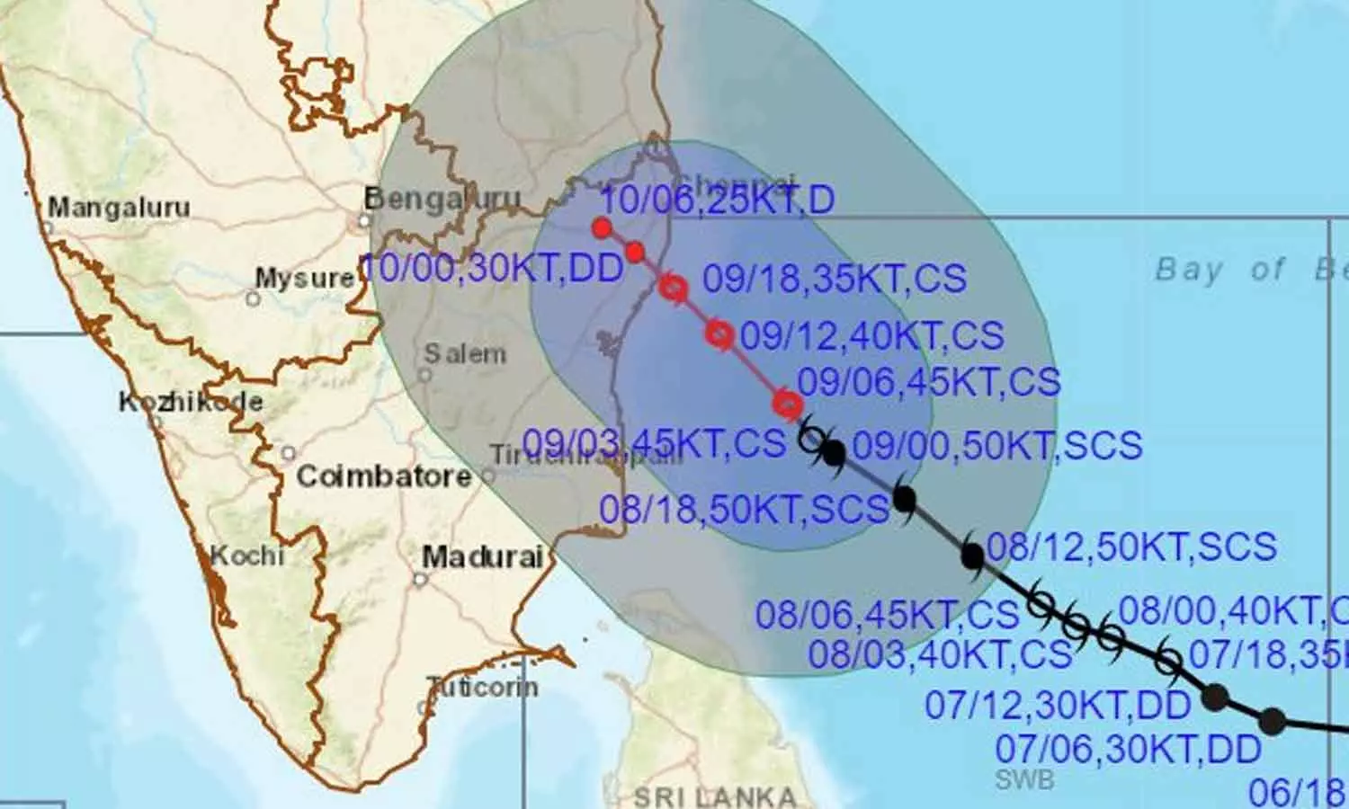 மாமல்லபுரத்திற்கு தென்கிழக்கில் 135 கி.மீ... ... மாமல்லபுரம் அருகே கரையை கடந்தது மாண்டஸ் புயல்