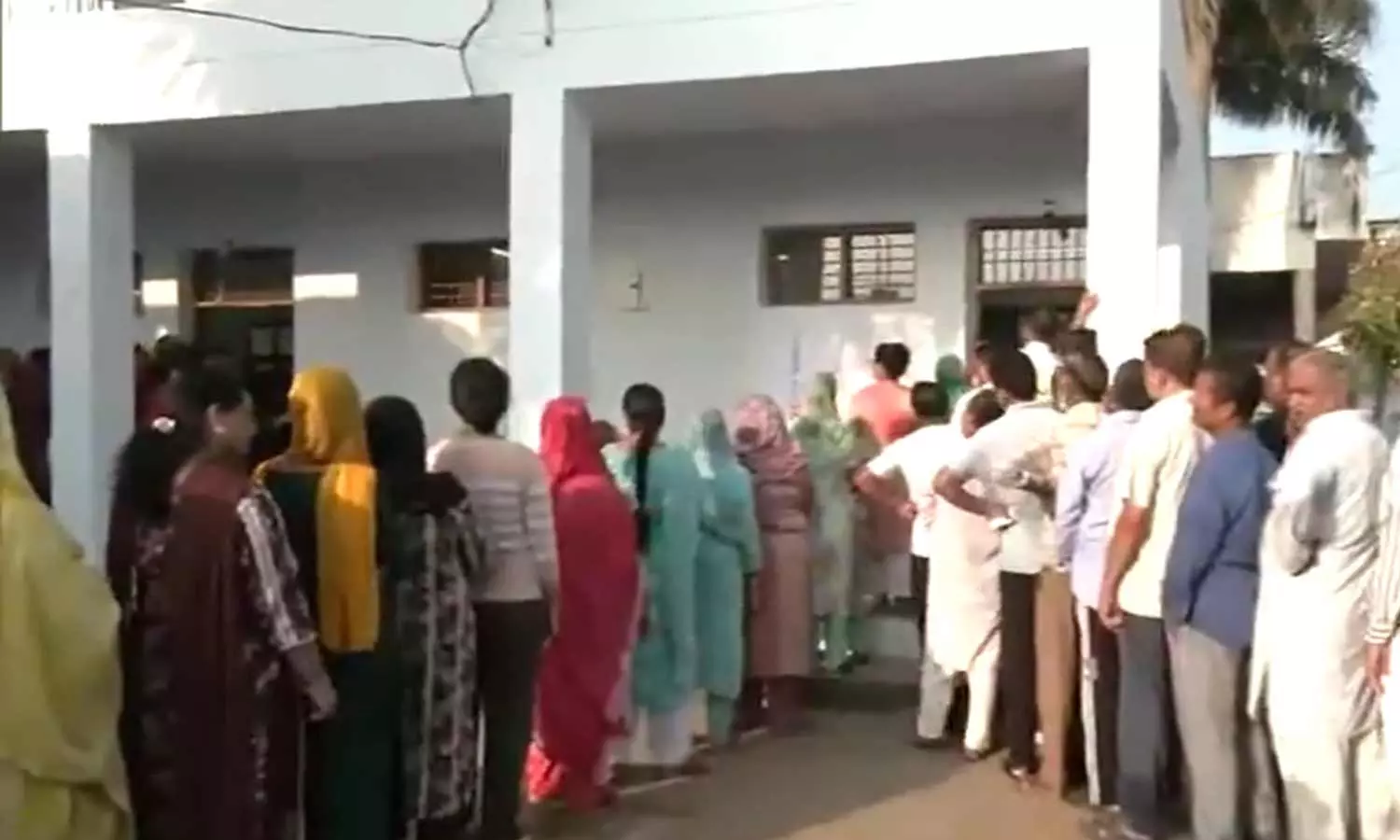 உதம்பூர் தொகுதிக்கு உட்பட்ட வாக்குச்சாவடியில் வாக்களிக்க காத்திருக்கும் மக்கள்.