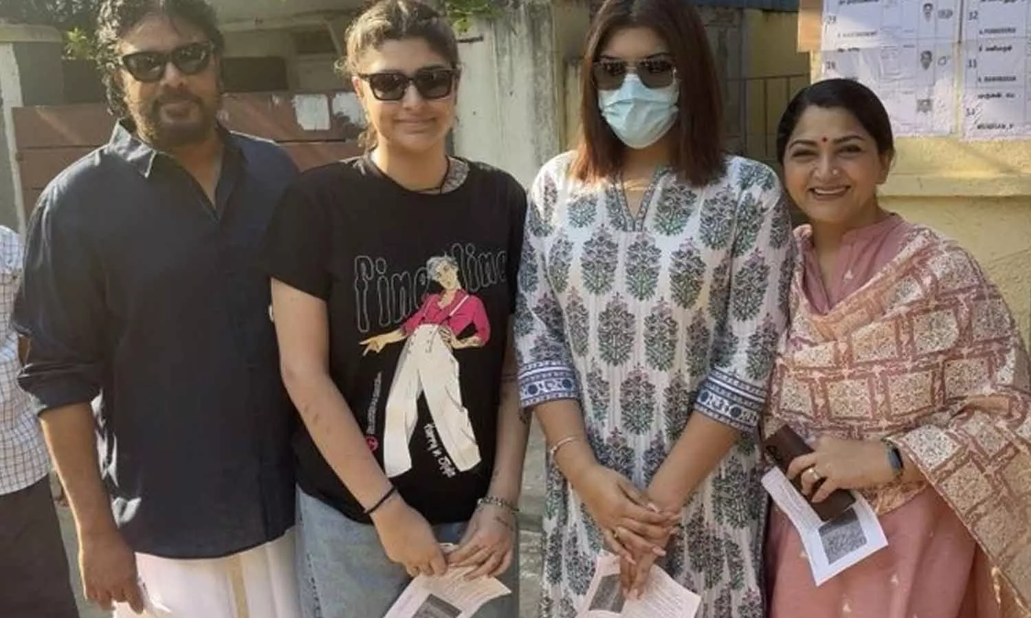 சென்னையில் உள்ள வாக்குச்சாவடியில் சுந்தர் சி மற்றும் குஷ்பு தனது மகள்களுடன் வந்து வாக்களித்தனர்.