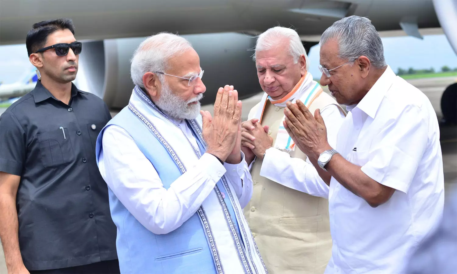 கண்ணூர் சென்றடைந்த பிரதமர் மோடிக்கு கேரள கவர்னர், முதலமைச்சர் பினராயி விஜயன் வரவேற்பு அளித்தனர்.
