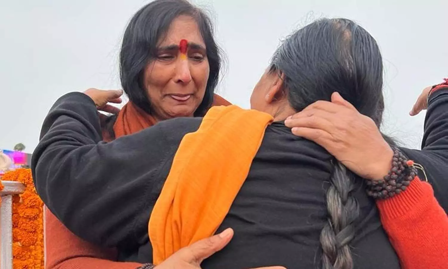 அயோத்தில் உமாபாரதியும், சாத்வி ரிதம்பராவும் ஒருவரையொருவர் கட்டித்தழுவிக்கொண்டனர்.