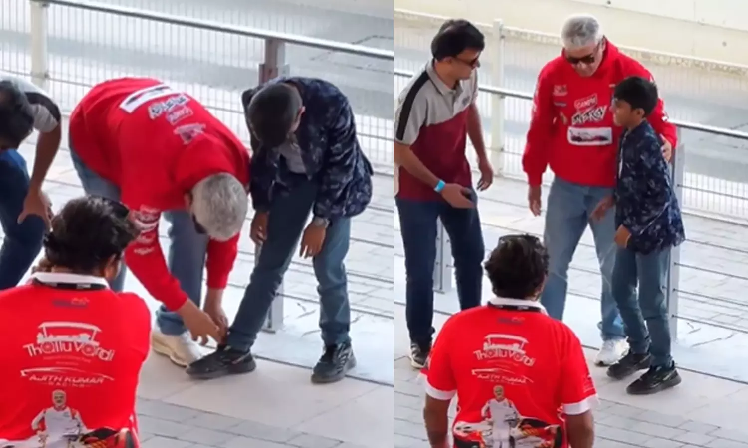 ரேஸ் களத்தில் நெகிழ்ச்சி..! குட்டி ரசிகருக்கு ஷூ லேஸ் கட்டிவிட்ட அஜித் - வைரலாகும் க்யூட் வீடியோ