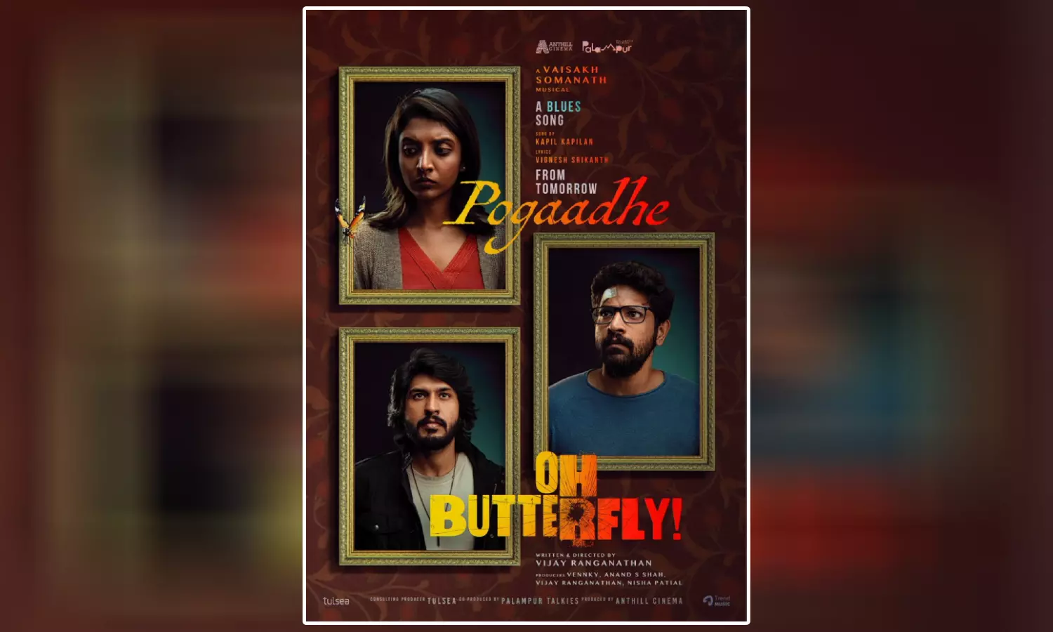 இந்த நிலையில், "ஓ பட்டர்பிளை" திரைப்படத்தின் ஃபர்ஸ்ட் சிங்கிள் `போகாதே' நாளை வெளியாகும் என படக்குழு அறிவித்துள்ளது. மேலும், இது தொடர்பாக புதிய போஸ்டரும் வெளியிடப்பட்டுள்ளது. விக்னேஷ் ஸ்ரீகாந்த் வரிகளில் கபில் கபிலன் பாடியிருக்கும் இந்தப் பாடல் நாளை வெளியாகிறது.