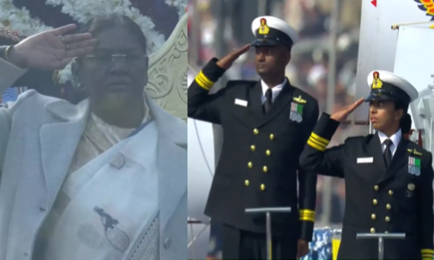 இங்கு, மும்படைகளின் அணிவகுப்பு மரியாதையை ஜனாதிபதி திரவுபதி முர்மு ஏற்றார்.