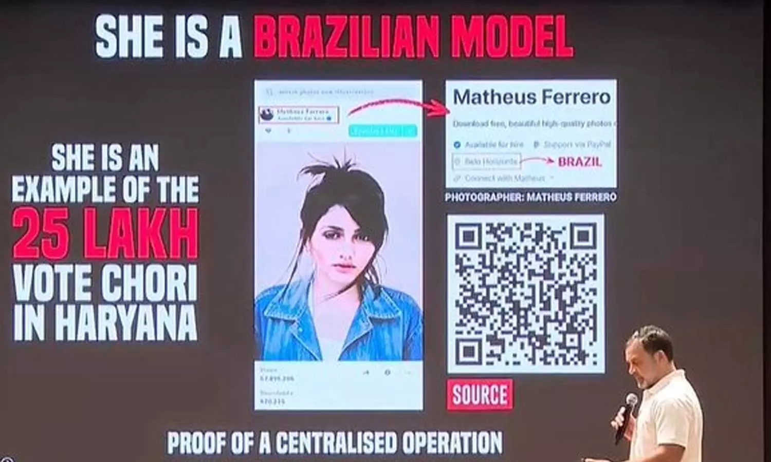 அரியானாவில் பிரேசில் மாடல் அழகி வெவ்வேறு பெயர்களில் 22 வாக்குகளை செலுத்தியுள்ளார் - ராகுல் காந்தி