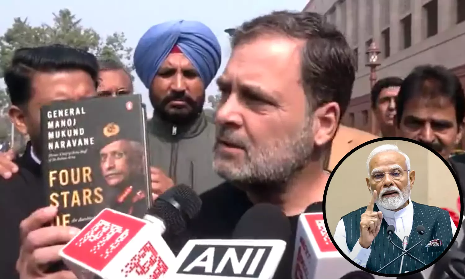 "நரேந்திர மோடி "எதைச் சரி என்று நினைக்கிறீர்களோ அதை செய்யுங்கள்" என்று ஒரு செய்தியை அனுப்பினார். இதன் பொருள், நரேந்திர மோடி தனது கடமைகளை செய்யவில்லை; "இது என் சக்திக்கு அப்பாற்பட்டது" என்று கூறி, ராணுவ தளபதியை அவர் விரும்பியதை செய்யச் சொன்னார். 'நான் மிகவும் தனிமையாக உணர்ந்தேன், முழு அரசமைப்பாலும் நான் கைவிடப்பட்டேன்' என்று நரவணே எழுதுகிறார்," என ராகுல் காந்தி தெரிவித்தார்.