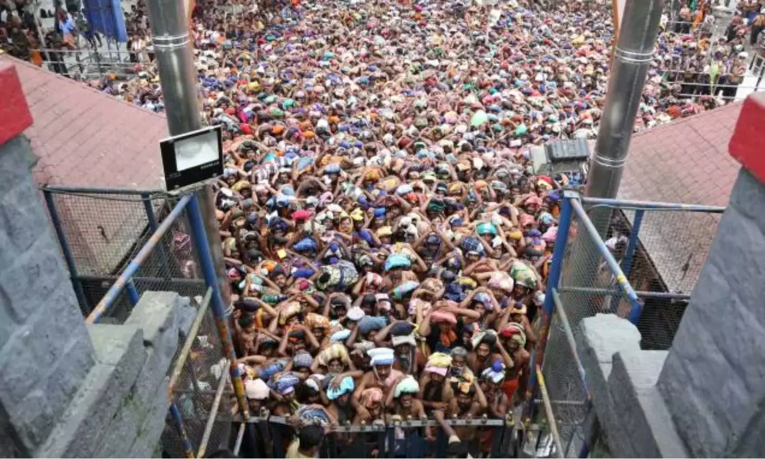 இன்று அதிகாலை முதல் லட்சக்கணக்கான பக்தர்கள் குவிந்தனர். இதனால் பதினெட்டாம் படி அருகே தள்ளுமுள்ளு ஏற்படும் அபாயம் ஏற்பட்டது. வரிசையில் நிற்கும் பக்தர்களை தாண்டி சில பக்கதர்கள் செல்வதால் அசாதரண சூழ்நிலை ஏற்பட்டது.
