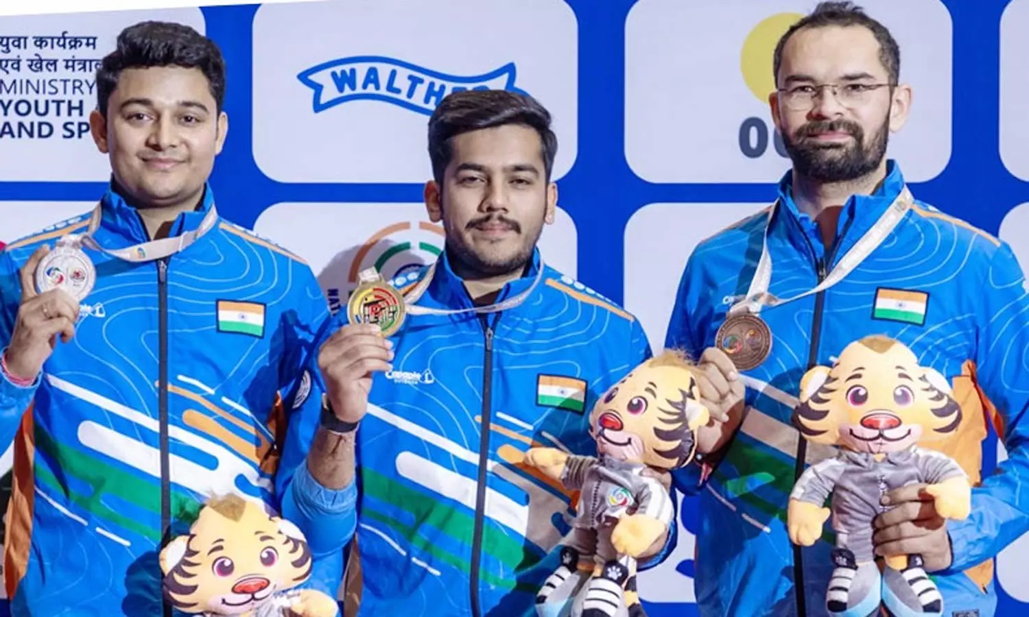 இந்த 3 இந்திய வீரர்களும் குழு போட்டியில் 1769 புள்ளிகளுடன் தங்கம் வென்றனர்.