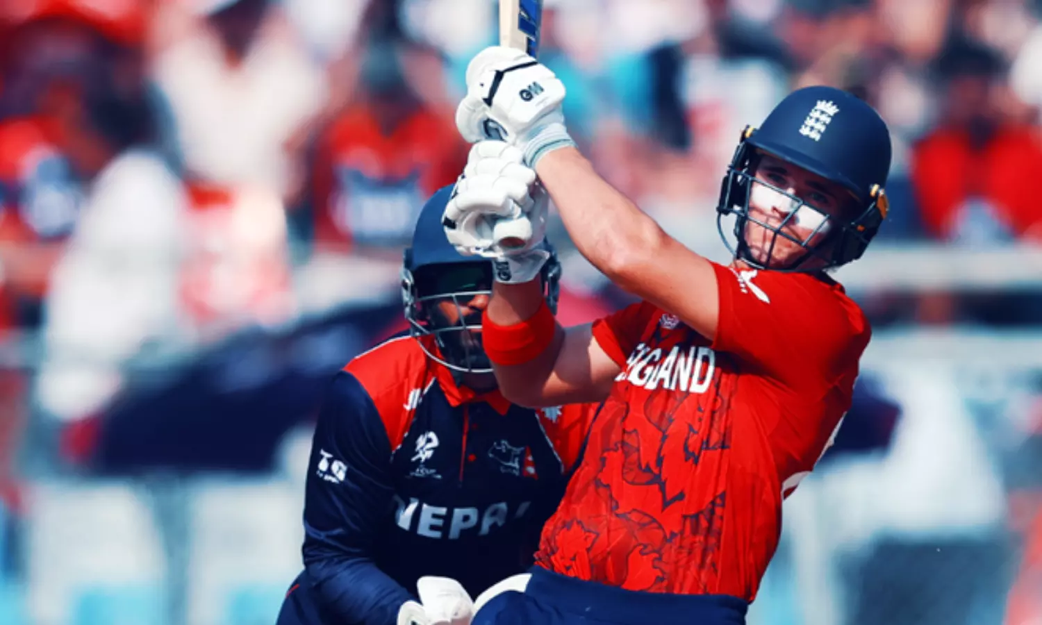 பலம் வாய்ந்த இங்கிலாந்து அணி நேபாளம் அணியின் அபாரமான பந்துவச்சில் சற்றே தடுமாறியது. இங்கிலாந்து அணியின் தொடக்க வீரர் பில் சால்ட் 1 ரன்களுக்கு பெவிலியன் திரும்பினார். இவருடன் களமிறங்கிய ஜாஸ் பட்லர் (26), டாம் பேன்டன் (2), சாம் கர்ரன் (2) ரன்களுக்கு ஆட்டமிழந்தனர். ஒருபக்கம் விக்கெட்டுகள் சரிந்த போதிலும், ஜேக்கப் பெத்தெல் 55 ரன்கள் (4 பவுண்டரிகள், 4 சிக்சர்கள்) விளாசினார்.