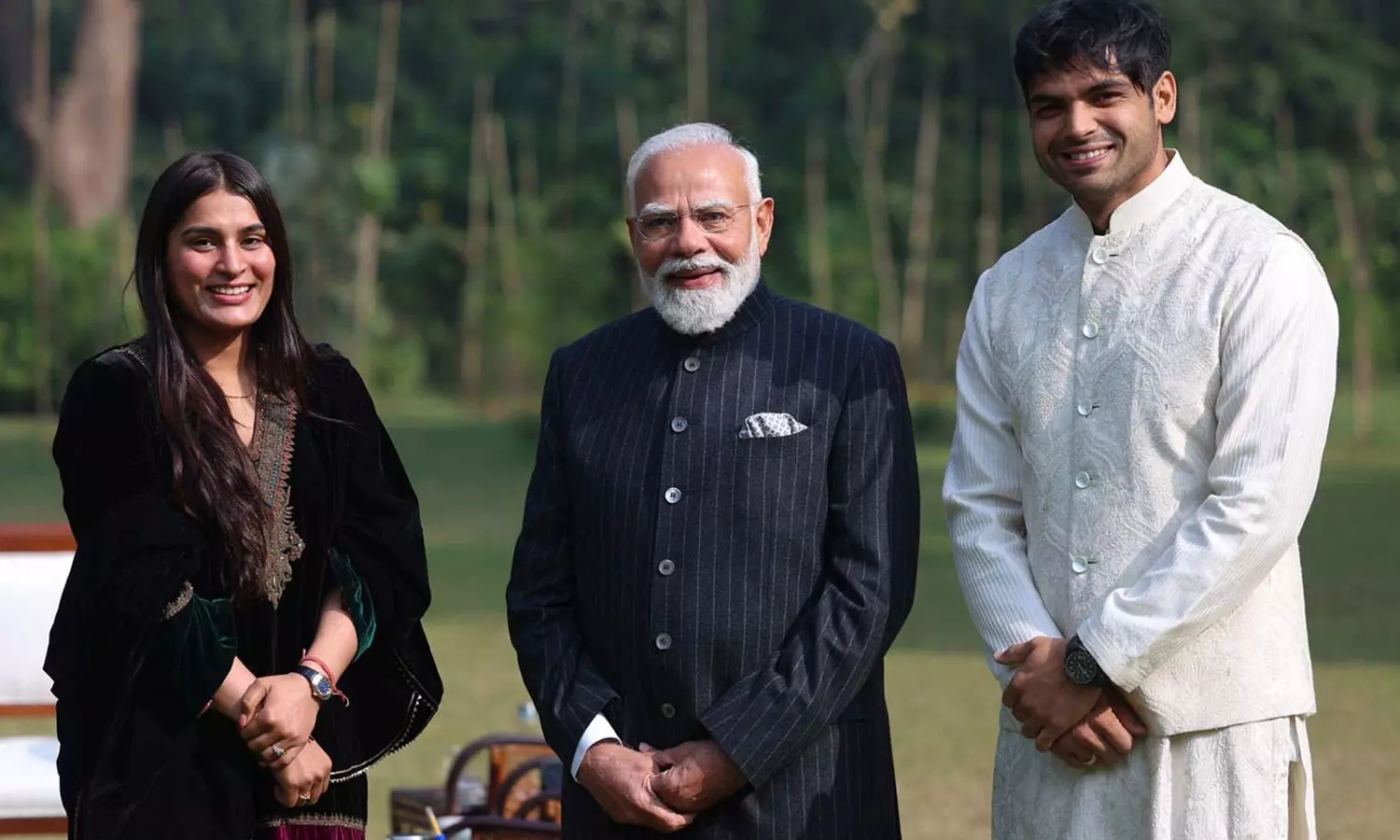 இதுதொடர்பாக, பிரதமர் மோடி எக்ஸ் வலைதளத்தில் வெளியிட்டுள்ள செய்தியில், இன்று காலை லோக் கல்யாண் மார்க்கில் நீரஜ் சோப்ராவையும் அவரது மனைவி ஹிமானி மோரையும் சந்தித்தேன். விளையாட்டு உள்பட பல்வேறு விஷயங்கள் குறித்து சிறந்த கலந்துரையாடலை மேற்கொண்டோம் என பதிவிட்டுள்ளார்.