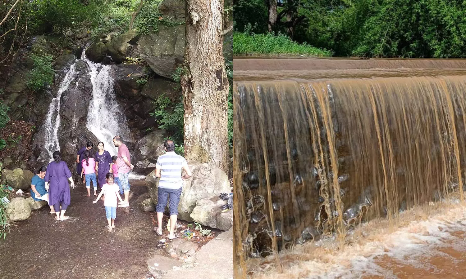 ஏற்காடு மலை பாதையில் கொட்டும் அருவியில் குளித்த சுற்றுலா பயணிகள் - கிழக்கு சரபங்கா நதியில் வெள்ளம் பெருக்கெடுத்து ஓடும் காட்சி