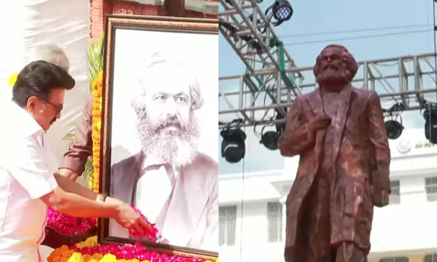 - கார்ல் மார்க்ஸ்சின் சிலை திறப்பு விழாவில் தி.மு.க. கூட்டணி கட்சி தலைவர்கள் பங்கேற்று இருந்தனர்.