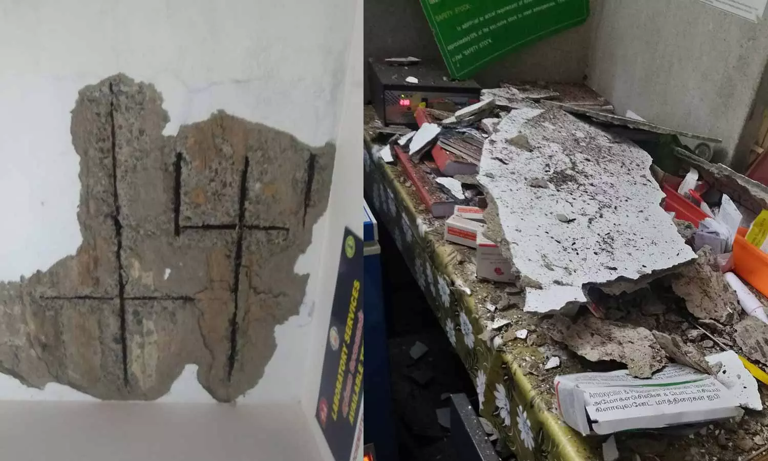 திருப்பூரில் ஆரம்ப சுகாதார நிலையத்தின் மேற்கூரை இடிந்து விழுந்ததால் பரபரப்பு