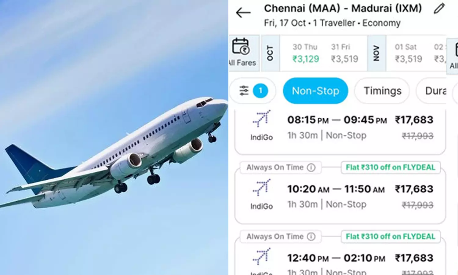 * சென்னையில் இருந்து தூத்துக்குடிக்கு சாதாரண நாட்களில் ரூ.3,608-ஆக இருக்கும் கட்டணம் தற்போது ரூ.17,053 வரை உயர்ந்துள்ளது.