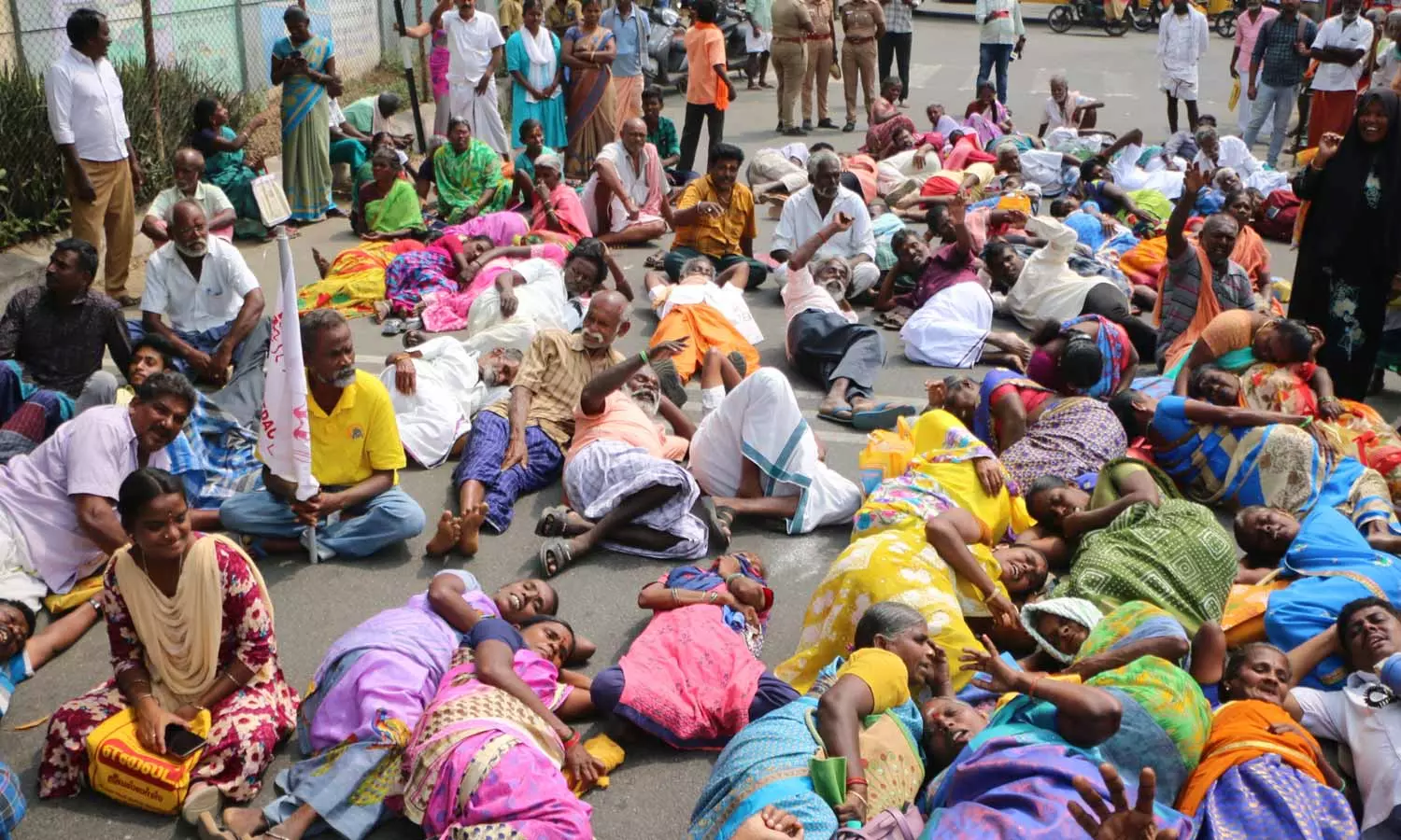 - ஆந்திர மாநிலத்தில் வழங்குவதை போன்று தமிழகத்திலும் மாற்றுத்திறனாளிகளுக்கு உதவித்தொகை உயர்த்தி வழங்க வேண்டும் என கூறி மறியல் போராட்டம் நடத்தினர்.