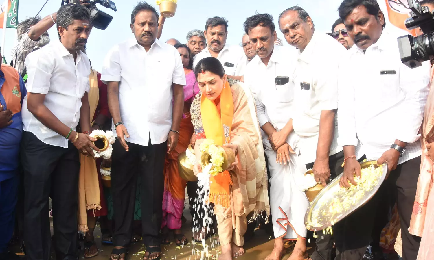 சுனாமி நினைவு தினத்தையொட்டி சென்னை பட்டினப்பாக்கம் கடற்கரையில் பா.ஜ.க. சார்பில் நடந்த அஞ்சலி நிகழ்ச்சியில் பா.ஜ.க. துணைத்தலைவர் குஷ்பு, செயலாளர் கராத்தே தியாகராஜன் உள்பட பலர் கடலில் பால் ஊற்றி வழிபட்டார்கள்.