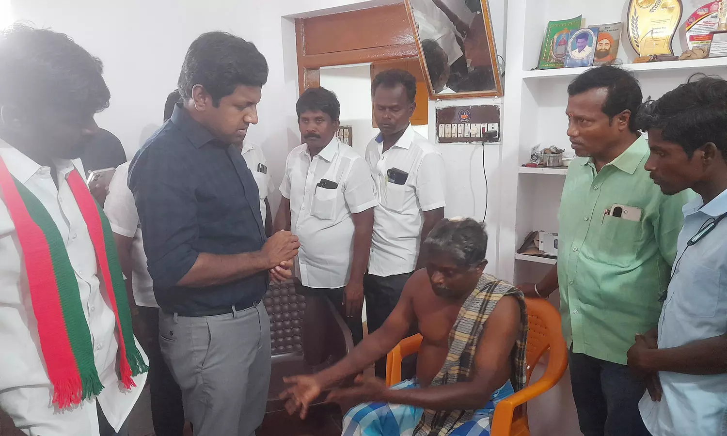 - அரிவாள் வெட்டில் காயமடைந்த பிரபாகரன், ராமசாமி ஆகியோரை சந்தித்து ஆறுதல் தெரிவித்து நடந்த சம்பவங்கள் பற்றி கேட்டறிந்தார்.
