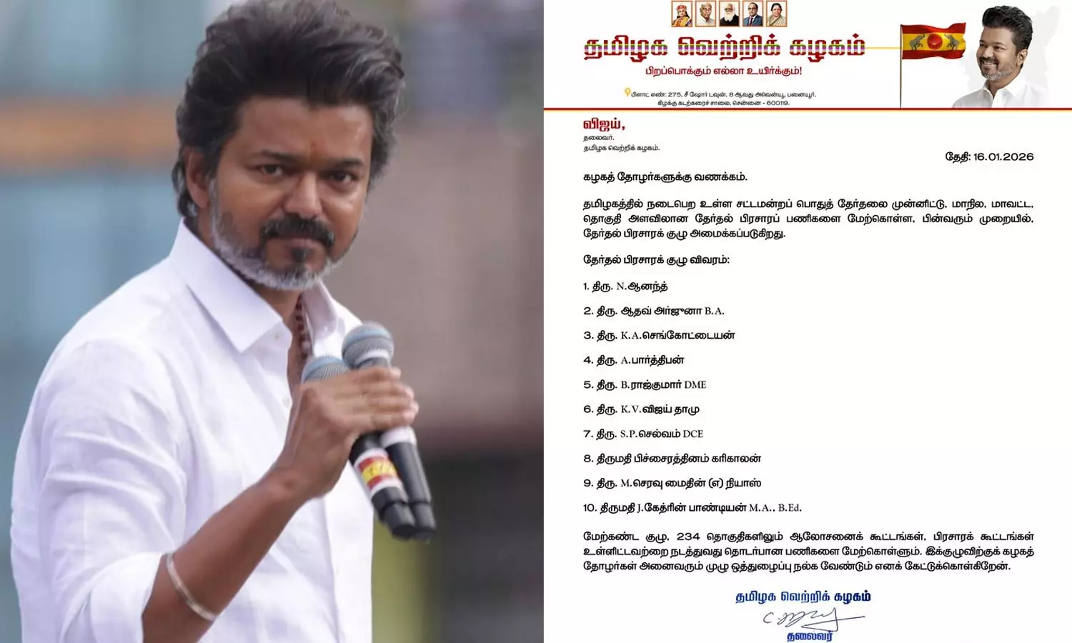 தேர்தல் பிரசார குழுவை அறிவித்தார் த.வெ.க. தலைவர் விஜய்