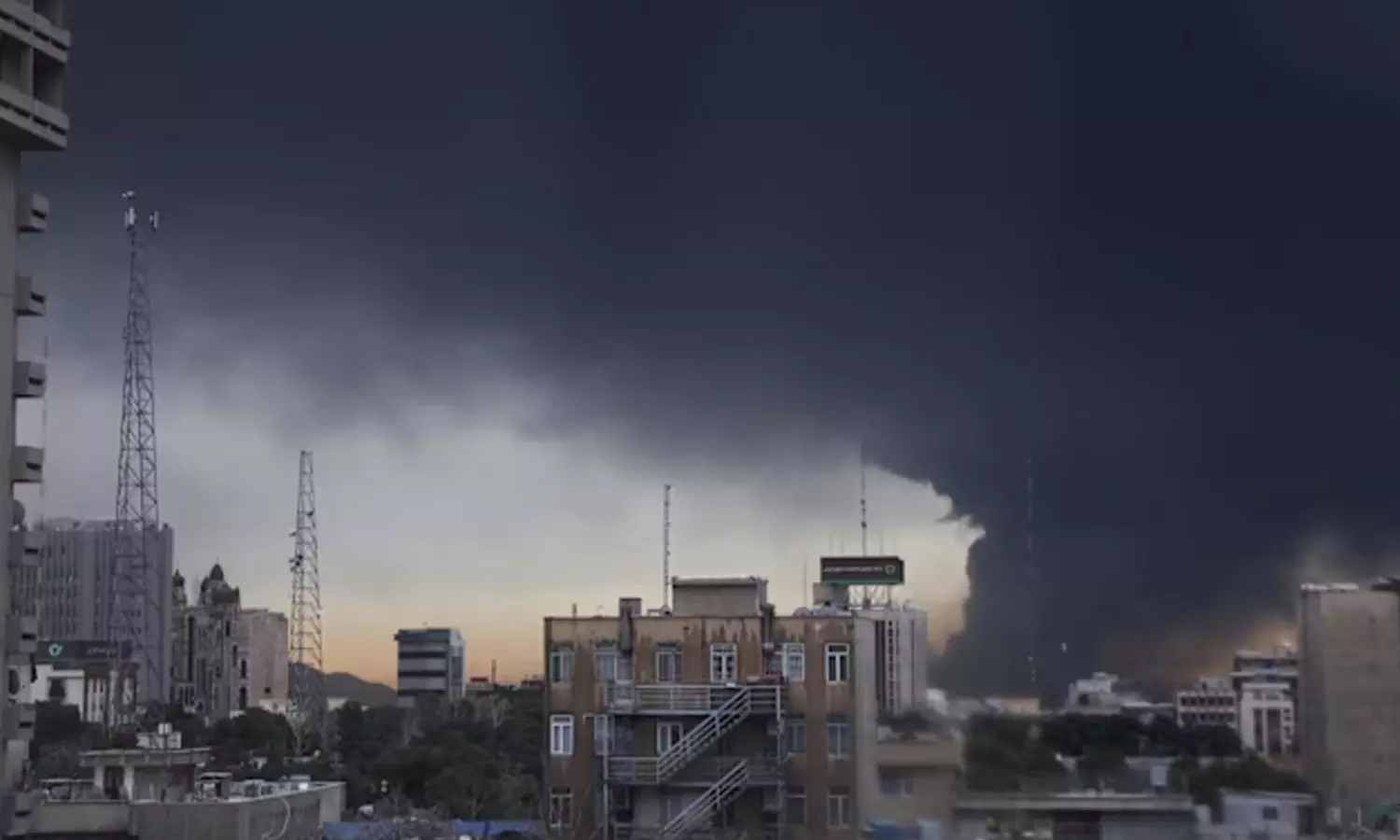 ஈரான் தலைநகர் தெஹ்ரானில் தீப்பற்றி எரியும் எண்ணெய் கிடங்கில் இருநு்து அதிகளவில் கரும்புகை வெளியாகிறது.
