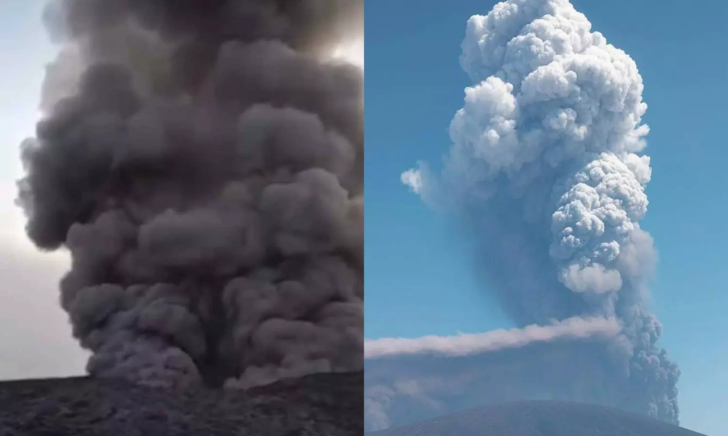 - எரிமலையில் இருந்து பல கிலோ மீட்டர் தூரத்திற்கு கரும்புகை வெளியேறி வருகிறது.