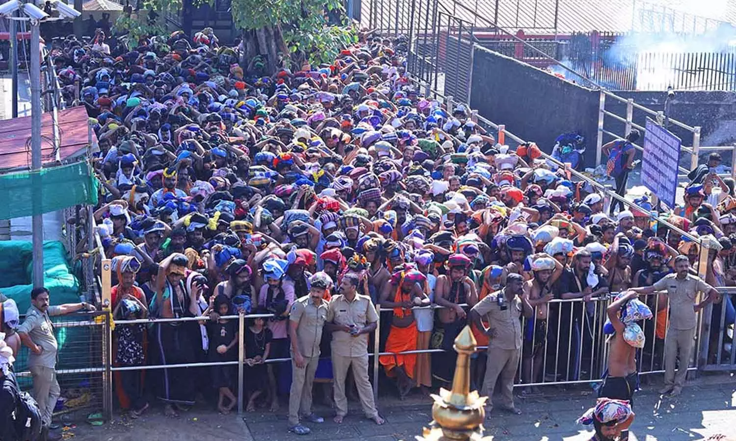 - நேற்றும் ஆயிரக்கணக்கான பக்தர்கள் இருமுடி கட்டிய படி சபரிமலை வந்தனர்.