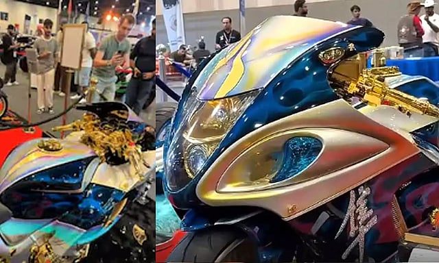துபாயில் நடைபெற்ற சர்வதேச வாகன கண்காட்சியில் சுசுகி நிறுவனத்தின் முழுவதும் தங்கத்தாலான சூப்பர் பைக் காட்சிப்படுத்தப்பட்டது. இந்த சூப்பர் பைக் பார்வையாளர்களை வெகுவாக கவர்ந்துள்ளது.