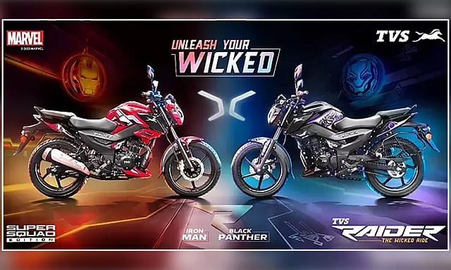 டி.வி.எஸ். மோட்டார் நிறுவனம் தனது 125சிசி கம்யுட்டர் மாடலான ரைடர் 125 மாடலின் புது வேரியன்டை அறிமுகம் செய்தது. இந்த வேரியன்ட் சூப்பர் ஸ்குவாட் எடிஷன் என்று அழைக்கப்படுகிறது. இந்த பைக் மார்வல் சீரிசை தழுவி: பிளாக் பேந்தர் மற்றும் ஐயன் மேன் என இருவித பெயின்ட் தீம்களில் கிடைக்கிறது. அந்த வகையில் ஒரு மாடல் ரெட், பிளாக் மற்றும் கோல்டு நிறங்களிலும், மற்றொரு மாடல் பர்பில் மற்றும் பிளாக் நிறங்களில் பெயின்ட் செய்யப்பட்டு உள்ளது.