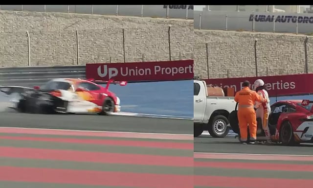 இந்நிலையில், அங்கு தனது அணியினருடன் அஜித் இருக்கும் வீடியோ ஒன்று நேற்று வைரலானது. இச்சூழ்நிலையில் இன்று ரேசிற்கான பயிற்சியில் அஜித் கலந்துக்கொண்டார். அப்பொழுது அவர் ஓட்டிய கார் விபத்துக்குள்ளானது. அதன் வீடியோ தற்பொழுது வெளியாகியுள்ளது. இந்த விபத்தில் அஜித்திற்கு ஒன்றும் ஆகாமல் உயிர் தப்பினார். கார் முன் பகுதி மிகுந்த சேதம் அடைந்துள்ளது என்பது குறிப்பிடத்தக்கது. இந்த வீடியோ தற்பொழுது வேகமாக வைரலாகி வருகிறது.