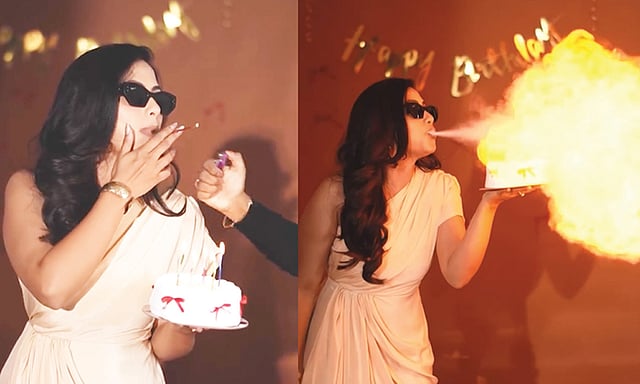 பிறந்தநாள் வீடியோவில் மதுமிதா வாயில் இருக்கும் மெழுகுவர்த்தியை சிகரெட் பற்ற வைத்தது போல் ஒருவர் பற்ற வைக்க தொடர்ந்து மதுமிதா கையில் கேக்கை வைத்தபடி ஊதும் போது தீப்பிழம்புகள் சிதறி பறக்கிறது. இந்த காட்சிகளை மதுமிதா தனது சமூக வலைதளபக்கத்தில் பகிர்ந்துள்ளார்.