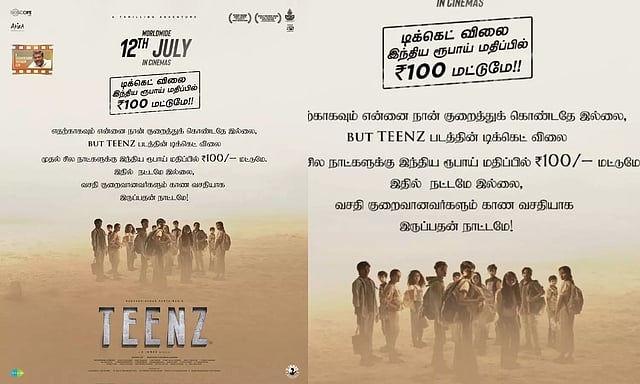 இதுக் குறித்து அவர் சமூக வலைத்தளத்தில் " எதற்காகவும் என்னை நான் குறைத்துக் கொண்டதே இல்லை, பட் டீன்ஸ் படத்தின் டிக்கெட் விலை முதல் சில நாட்களுக்கு 100/- மட்டுமே, இதில் நட்டமே இல்லை, வசதி குறைவானவர்களும் காண வசதியாக இருப்பதன் நாட்டமே" என்று பதிவிட்டுள்ளார்.