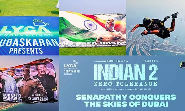 இந்நிலையில் இந்தியன் 2 படத்தினை பல வழிகளில் புரோமோஷன் செய்து வருகிறது படக்குழு. அந்த வகையில் துபாயில் ஸ்கை டைவிங் மூலம் இந்த படத்தினை புரோமோஷன் செய்துள்ளது. இது தொடர்பான வீடியோ சமூக வலைதளத்தில் வைரலாகி வருகிறது.