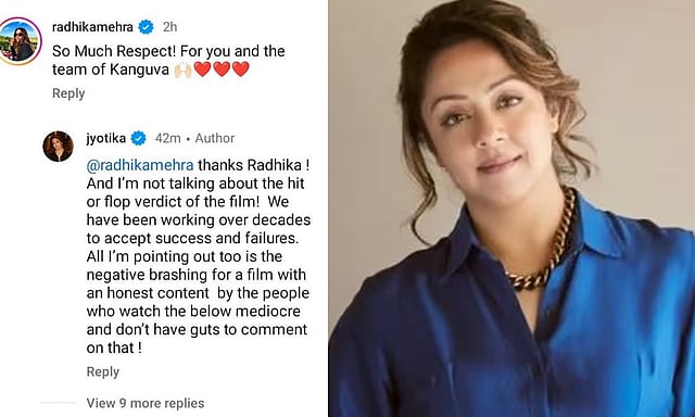 இந்நிலையில், கங்குவா படத்திற்கு எதிராக திட்டமிட்டு அவதூறு பரப்பப்படுவதாக நடிகை ஜோதிகா தனது இன்ஸ்டாகிராம் பக்கத்தில் காட்டமாக பதிவிட்டுள்ளார்.