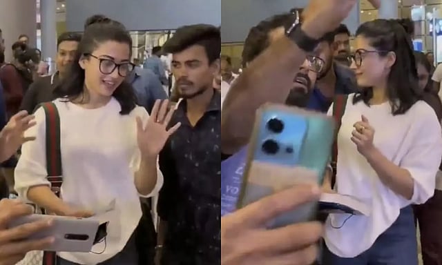 இந்நிலையில், மும்பை விமான நிலையத்தில் ரசிகர் ஒருவர் தனது கையைத் தொட்டு செல்ஃபிக்கு போஸ் கொடுக்கச் சொன்னதால் நடிகை ராஷ்மிகா மந்தனாவுக்கு அசவுகரியம் ஏற்பட்டது. இருப்பினும் அவர் அமைதியாகவும், பணிவாகவும் அந்த சூழ்நிலையை கையாண்டார்.