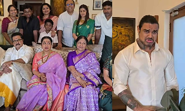 இந்த நிலையில், நேற்று தல பொங்கலையும் நடிகை வரலட்சுமி குடும்பத்துடன் கொண்டாடினார். அப்போது சூர்யவம்சம் படத்தில் வரும் ஒரு காட்சியை மாப்பிள்ளையை வைத்து சரத்குமார் குடும்பத்தினர் ரீ-கிரியேட் செய்துள்ளனர். 'எல்லாரும் வந்துட்டாங்களா... என ஒருவர் கூற, ராதிகா ஏங்க சின்ராசு என்று கூறுகிறார். அதற்கு சரத்குமார் எங்க குடும்பத்துல எல்லாரும் வந்தாச்சு சீக்கிரம் எடு என்கிறார். அப்போது மாப்பிள்ளை நிக்கோலாய் சச்தேவ் பாவமாக ஓரமாக நிற்கிறார்.