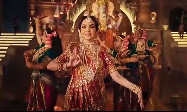 இந்நிலையில் நேற்று முகேஷ் அம்பானியின் மனைவி நீதா அம்பானி தனது மகன் ஆனந்த் திருமண விழாவில் காஞ்சிபுரம் பட்டுப்புடவை அணிந்து கலந்து கொண்டார். அதை தொடர்ந்து இந்தி படத்தின் பக்தி பாடல் ஒன்றுக்கு அவர் நடனமாடினார்.