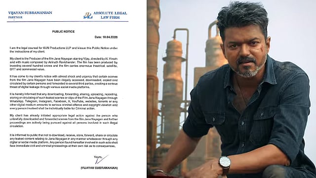 இதனை தொடர்ந்து, ‘ஜன நாயகன்’ படத்தின் கசிந்த காட்சிகள் மற்றும் படத்தின் லிங்க்கை பகிர்பவர்கள் மீது சட்ட நடவடிக்கை எடுக்கப்படும் என பட தயாரிப்பு நிறுவனம் எச்சரிக்கை விடுத்துள்ளது. மேலும் பலரின் உழைப்பு, முதலீ என்பதை கடந்து இந்த செயல் நேர்மையின்மையின் வெளிபாடு. அதை ஒருபோதும் மக்கள் ஆதரிக்கக்கூடாது என கேட்டுக்கொண்டுள்ளது.