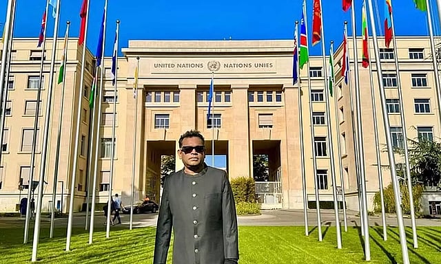 இந்நிலையில், ஸ்விட்சர்லாந், ஜெனிவாவில் உள்ள ஐ.நா. சபையின் தலைமையகத்திற்கு ஏ.ஆர்.ரகுமான் சென்றுள்ளார். இது தொடர்பான புகைப்படத்தை அவர் தனது சமூக வலைதளத்தில் பகிர்ந்துள்ளார். அவர் எதற்காக ஐ.நா. சென்றார் என்ற தகவல் வெளியாகவில்லை.