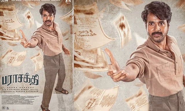 இந்நிலையில், இப்படத்தின் டைட்டில் வீடியோவை படக்குழு நேற்று வெளியிட்டது. இப்படத்திற்கு பராசக்தி என்று பெயரிட்டுள்ளனர். படத்தின் டைட்டில் டீசர் வீடியோ மற்றும் ஃபர்ஸ்ட்லுக் போஸ்டர் இணையத்தில் வைரலானது. இந்நிலையில் படக்குழு மீண்டும் சர்ப்ரைஸை கொடுத்துள்ளனர். தற்பொழுது படத்தின் புதிய போஸ்டரை வெளியிட்டுள்ளனர். அதில் தமிழ் தீ பரவட்டும் என்ற வார்த்தை இடம் பெற்றுள்ளது. இப்படம் இந்தி எதிர்ப்பை பேசும் திரைப்படமாக உருவாகி வருகிறது.