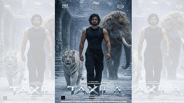 பழமையான தக்ஷஷிலா நகரத்தின் வரலாற்றையும், அதனை மையமாக கொண்ட நவீன அரசியல் மர்மத்தையும் இணைத்து உருவாக்கப்பட்ட படம்தான் தக்ஸிலா. 2026 காலக்கட்டத்தில் நடக்கும் கதையில், ஒரு இளம் தொல்பொருள் ஆய்வாளர் நாயகன் சதீஷ் ராமகிருஷ்ணன் பழமையான சிதைந்த கட்டிடங்களின் உள்ளே மறைந்திருந்த ரகசிய ஆவணங்களை கண்டுபிடிக்கிறார். அந்த ஆவணங்களில், தற்போதைய அரசியலையே மாற்றக்கூடிய ரகசியம் இருப்பது அவருக்கு தெரிய வருகிறது.