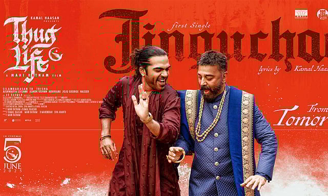 இந்நிலையில், தக் லைப் திரைப்படத்தின் முதல் பாடலான 'ஜிங்குச்சா' பாடல் நாளை (ஏப்ரல் 18) வெளியாகும் என படக்குழு போஸ்டர் வெளியிட்டு அறிவித்துள்ளது. அந்த போஸ்டரில் திருமணத்தில் கமல்ஹாசனும் சிம்புவும் இணைந்து நடனமாடுவது கவனம் ஈர்த்துள்ளது.