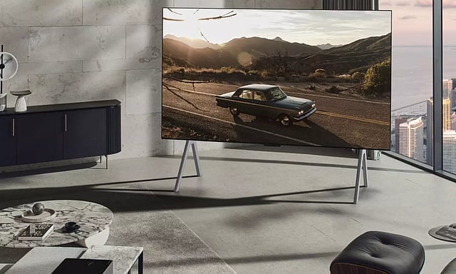 எல்ஜி சிக்னேச்சர் OLED M மாடல் மெல்லிய மற்றும் அதிநவீன கேலரி டிசைன் கொண்டிருக்கிறது. இந்த டிவி பயன்படுத்துவோர் டிவி அருகில் மேஜை எதுவும் வைக்க வேண்டிய அவசியம் இல்லை. இந்த டிவியில் 97 இன்ச் OLED ஸ்கிரீன் வழங்கப்பட்டு இருக்கிறது. இதில் உள்ள ஜீரோ கனெக்டிவிட்டி பாக்ஸ் HDMI 2.1, USB, RF, LAN மற்றும் ப்ளூடூத் என ஏராளமான கனெக்டிவிட்டி ஆப்ஷன்களை வழங்குகிறது.