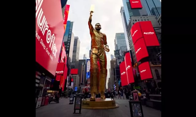 அமெரிக்காவின் நியூயார்க் மாகாணத்தில் உள்ள டைம்ஸ் சதுக்கத்தில் இந்திய அணியின் முன்னாள் கேப்டனான விராட் கோலியின் தங்க சிலை அமைக்கப்பட்டுள்ளது. இதுதொடர்பான புகைப்படங்கள் இணைய தளங்களில் வைரலாகி வருகின்றன. விசாரணையில், அந்தச் சிலை போலி என தெரிய வந்துள்ளது.