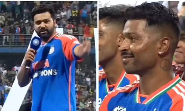 மும்பை எப்போதும் வெற்றியை கொண்டாடுவதில் ஏமாற்றியது இல்லை. ரசிகர்கள், மக்கள் மற்றும் மொத்த தேசத்துக்கும் நன்றியை தெரிவித்துக்கொள்கிறேன் என்று கூறினார். மேலும் அணியின் வீரர்கள் குறித்து அவர் பேசுகையில், ஹர்திக் பாண்ட்யாவின் ஆட்டம் உலகின் பயங்கரமாக வீரர்களின் ஒருவராக விளங்கும் டேவிட் மில்லரை வீழ்த்த எங்களுக்கு பேருதவியாக இருந்தது. கடைசி ஓவரில் பதிவீசுவது எப்போதும் கடினமான ஒன்று. ஆனால் அதை செய்து காட்டிய பாண்டியாவுக்கு Hats off என்று தெரிவித்தார். ரோகித்தின் பேச்சால் நெகிழ்ச்சி அடைந்த பாண்டியா கண்கலங்கினார். இது மைதானத்தில் இருந்த அனைவரையும் நெகிழ்ச்சி அடையச் செய்தது.