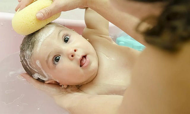 ஒருவேளை குளிப்பாட்ட வேண்டும் என்று முடிவு செய்தால் சூடான வெந்நீரை பயன்படுத்துவதை தவிர்க்கவும். ஏனெனில் குழந்தையின் தோல் சூடான வெந்நீரால் சேதமடையும். எனவே சூடான வெந்நீரில் இல்லாமல் வெதுவெதுப்பான நீரில் குழந்தையை குளிப்பாட்ட பயன்படுத்த வேண்டும்
