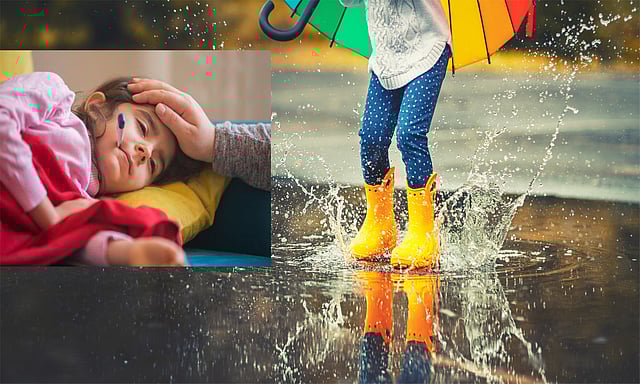 வீட்டுக்கு முன்னால் தேங்கியிருக்கிற மழை நீரில் வெறுங்காலுடன் குதிப்பதற்கு பிள்ளைகளுக்கு ரொம்பப் பிடிக்கும்தான். ஆனால், அப்படிக் குதித்தால் காய்ச்சல், சளி, வயிற்றுப்போக்கு, எலிக் காய்ச்சல் என மழைக்கால தொற்றுநோய்கள் அத்தனையும் வந்துவிடலாம். 10 வயதுக்கு மேல் வளர்ந்த குழந்தைகள் என்றால், அவர்களுக்கு நோய் எதிர்ப்புச் சக்தி தேவையான அளவு உடலில் இருக்கும். அதுவரைக்கும் மழை நீரில் விளையாடுவதைத் தள்ளி வைப்பதுதான் நல்லது.
