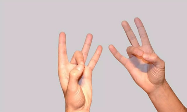இடது கை: நடுவிரல், கட்டை விரலின் நுனிகள் தொட வேண்டும். மற்ற விரல்கள் நேராக இருக்கட்டும்.