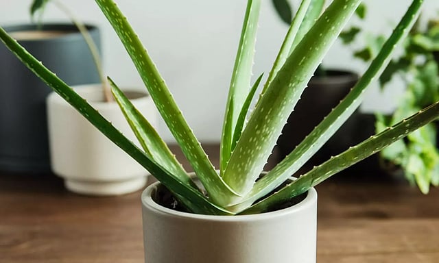 கற்றாழையில் ஆன்டிஆக்ஸிடன்ட்கள், வைட்டமின்கள் மற்றும் தாதுக்கள் நிறைந்துள்ளன. இது தோல் பராமரிப்பு பொருளாக பயன்படுத்தப்படுகிறது. இது இயற்கை அழகு சாதன பொருட்கள் தயாரிப்பில் முக்கிய பங்காற்றுகிறது. மேலும் கற்றாழை காற்றை சுத்திகரிக்கும் பண்புகளையும் கொண்டுள்ளது. எனவே இதனை வீட்டில் வளர்த்தால் மாசுக்களை உறிஞ்சி சுத்தமான சூழலை உருவாக்குகிறது. மேலும் காற்றின் தரம் மேம்படுவதால், சுவாச நோய்களின் ஆபத்து குறைகிறது.