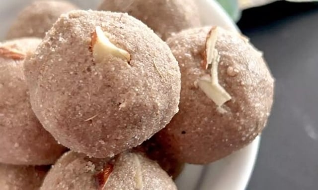 பின்னர் தேவையான அளவு நெய், பால் சேர்த்து நன்கு பிசைந்து விருப்பப்படி உருண்டைகளாக உருட்ட வேண்டும்.